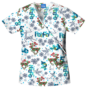 Peace and joy shouldn’t only hang around until Christmas is over. Slip on this slim fit mock wrap top over a white t-shirt to help calm your chattering teeth. You can keep wearing this winter-themed scrubs top as long as there is snow on the ground.