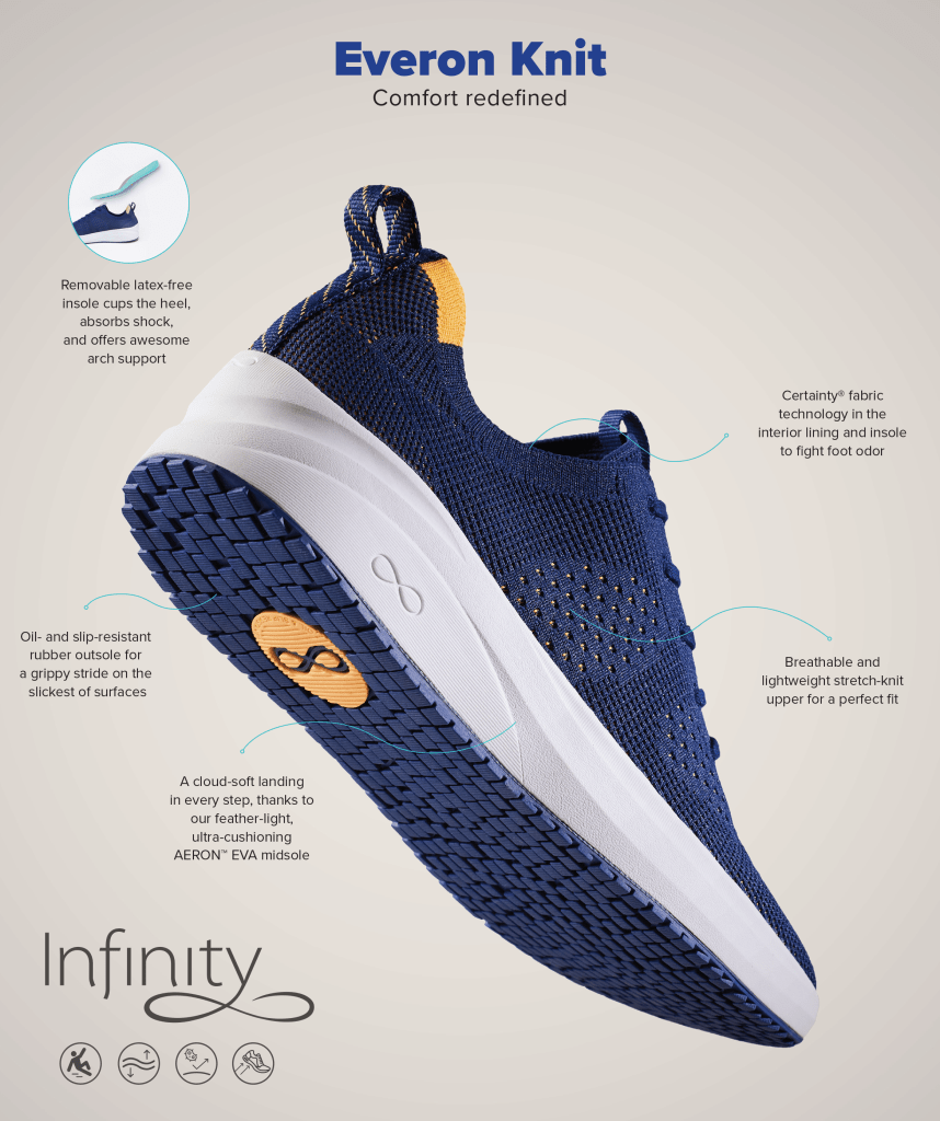 The All-New Everon-Knit Is One Of The Softest Most Shock Absorbent Shoes Ever. The New Aeron Eva Midsole Is Thicker In The Heel For Cushioning Where You Need It And Its Stretch-Knit Upper Flexes And Breathes For Custom Fit And Comfort All Day Long. Plus It Comes In Medium And Wide Widths In Three Styles. Lightweight Breathable Stretch-Knit Upper For A Perfect Fit